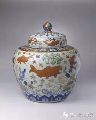 明 五彩鱼藻纹盖罐