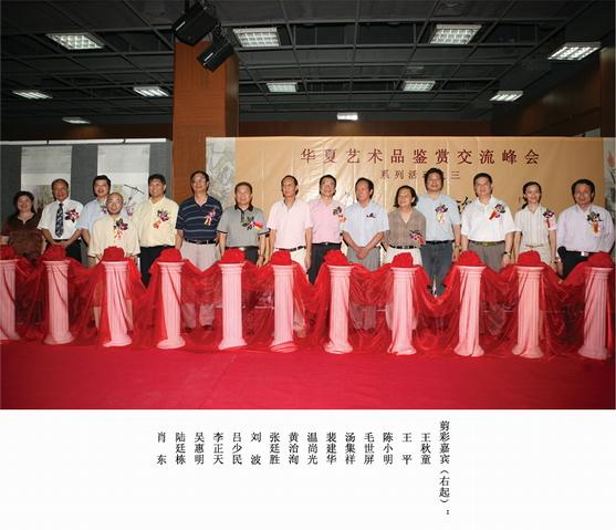 文化部艺术服务中心副主任刘波在剪彩仪式上讲话;他说“‘华夏艺术品鉴赏交流峰会’是文化部艺术服务中心为搞活和规范艺术品市场的全国性活动,该活动第一届在广东举办,我们希望广东省和广州市的政府机构和广大群众都给予大力支持,从峰会系列活动之三——“陆廷栋画钟馗”的举办看来,我相信“华夏艺术品鉴赏交流峰会”一定会在广东办得圆满、成功;为文化部政策的制定和进一步改革开放提供更多的参照数据。文化部艺术服务中心艺术品鉴定评估广东工作站会成立以来,受到广东各级政府有关部门的支持,工作进展顺利,我在此表示感谢!他们能和广东省金秋慈善基金会一起,把文化事业和社会慈善事业相结合,更是难能可贵。”
