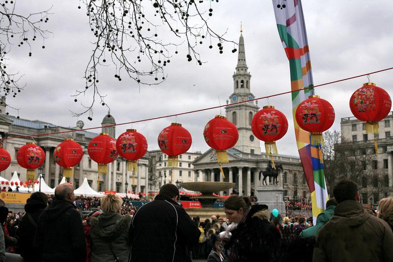 二、2月17日,伦敦市中心特拉法加广场上盛大的春节庆典日前刚刚落下帷幕,这是亚洲以外规模最大的中国农历新年庆祝活动,吸引了约70万市民和游客参加