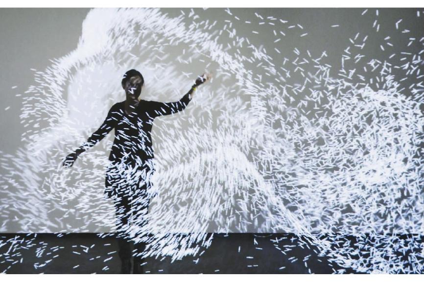 三、2月17日,在瑞士伊佛登,法国艺术家巴达内表演光舞。当日,名为“与光共舞”的展览举行预演发布会。