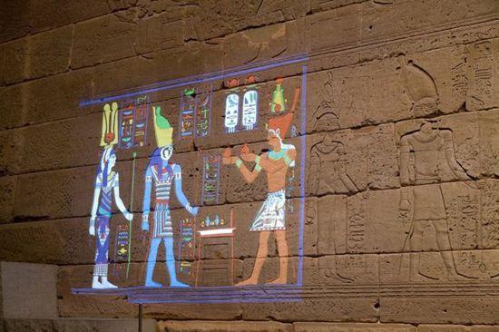 四、【纽约】纽约大都会艺术博物馆(Metropolitan Museum of Art)一个名为“神庙着色“(Color the Temple)的新装置中,一件知名的埃及浮雕得以通过现代科技的手段重现昔日光彩。
