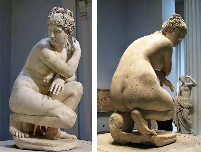 西方绘画作品起源于雕塑,《蹲着的维纳斯》中对背部的成功刻画对古典主义的艺术家和绘画大师们产生了很大的影响。