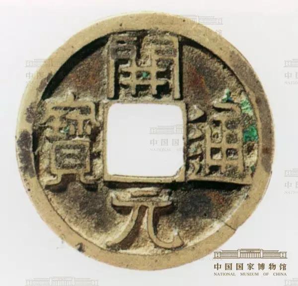 开元通宝于唐武德四年(公元621年)始铸造流行。“开元通宝”寓意为开创新纪元的通行宝货,欧阳询书写钱文。圆形方孔钱经历了两个阶段:重量钱(新五铢钱为最后一种),年号钱(第一个是唐高宗时铸的乾封泉宝),“开元通宝”钱正处在转折点上。