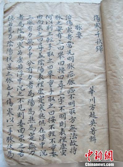二、3月8日,在《中国医籍通考》中明确记载失传的清代名医方起英所著《千秋铎》的清代写本在隐匿200余年后,日前重现世间。