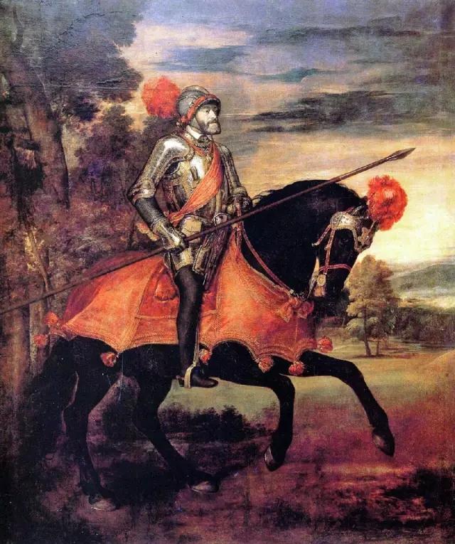 1548年提香受查理五世之邀,在宫廷里画了《查理五世在穆尔堡》,以纪念查理五世在镇压新教徒中取得的胜利。