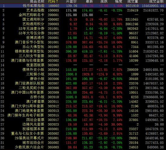 10月8日,中国国际文交所成交2.11亿,成交量956.57万,钱币邮票指数上涨1.44%,成交1.85亿;艺术品指数下跌0.23%,成交2516.18万。假日开盘第一日,中国国际文交所交易所延续上涨趋势,继续放量上涨,交易火爆,盘面高开高走,盘中震荡上行走势,尾盘收小阳线。提醒:入市有风险,投注需谨慎!