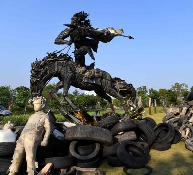 厦门举办公共艺术展 用废弃汽车轮胎创作雕塑