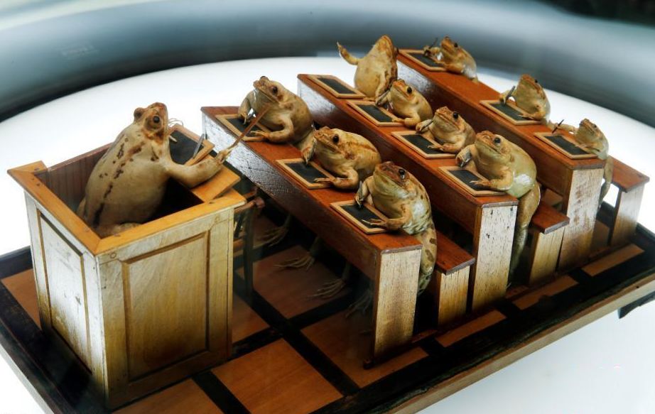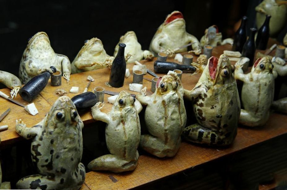 2018年11月7日,瑞士一家名为青蛙博物馆的奇特展览举行,108只青蛙标本惟妙惟肖地模仿人们日常生活场景展出,让人过目难忘。