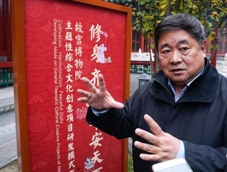 11月14日,“修身 齐家 平安天下”——故宫博物院主题性综合文化创意项目研发模式发布会在北京举行,宣布“金榜题名”、“宫囍·龙凤呈祥”、“故宫中国节”三个主题性综合文创项目正式启动。此项目将文物、科技、艺术相结合,以沉浸式、互动式的方式向人们展示科举文化、大婚礼仪、年节内涵。图为故宫博物院院长单霁翔介绍文创项目。