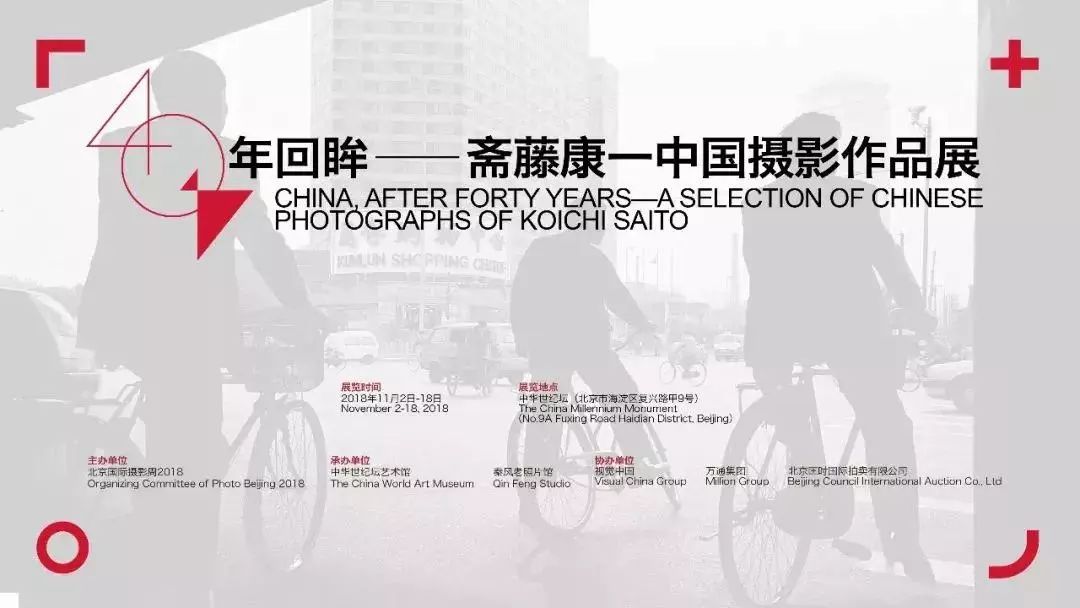 “40年回眸--斋藤康一中国摄影作品展”于2018年11月6日至201811月18日在清中华世纪坛一层综合展厅举行。此次展览选取斋藤康一先生在中国各地拍摄的图片80幅,按照40年历程为序,以城市变迁、乡村景观、衣食住行、百姓生活等内容,反映改革开放40年期间中国社会和人民生活的巨大变化。展览将通过客观、真实、珍贵的镜头,与观众一道回顾奋斗的艰辛,分享成功的荣耀,鼓舞继续改革开放的勇气和劲头。