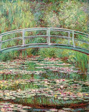 沿着水面,美丽的睡莲一片片向湖面远处扩展开来,画家利用了树的倒影,衬托出花朵的层次,是十分有创造性的构思。莫奈把整个身心都投在这个池塘和他的睡莲上面了,睡莲成了他晚年描绘的主题。此后27年里,他几乎再也没有离开过这个主题。莫奈作品:睡莲系列。