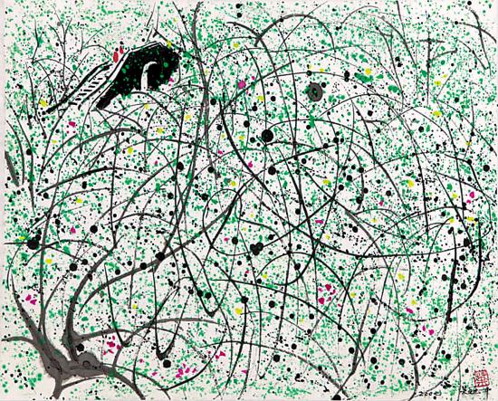 他出生与一九一九年。尽管早年已臻成熟,但成名却迟至七八十年代。他来的突然,却为我们带来了崭新的现象。他出现于一群杰出的新生画家的画展及刊物中,其作品远不止新颖突出;更充满信心,示人以权威性。一个全新的面貌。我们立即认识到:这是我们要集中研究的画家之一,以寻求长久以来压在我们心头上各种问题的答案:中国画向何处去?其发展,成就能否与世界潮流汇合?其中国性质的前景与保持传统的关系?走向现代化的代价等等。