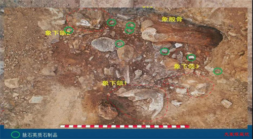 动物化石种类包括象、原始牛、赤鹿等,出现大象等动物化石集中埋藏的现象。光释光测年数据显示遗址中上部堆积年代为距今7万-5万年,下部堆积年代应该会更早,有待进一步工作确认。
