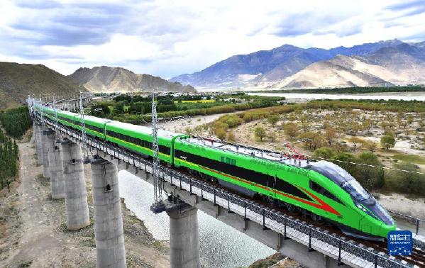 试运行的复兴号列车行驶在西藏山南市境内(6月16日摄)。新华社记者 觉果 摄