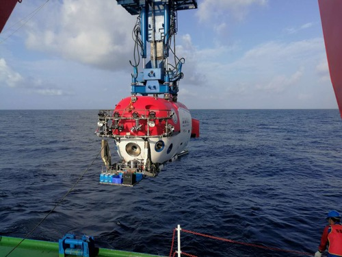 2018年4月,我国水下考古工作者搭乘载人深潜器“深海勇士号”,对西沙群岛北礁区域进行考古调查。(新华社记者 施雨岑 摄)