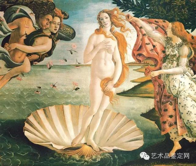 此画通过对维纳斯伤感的神情和秀美的姿态的描绘,为我们展现了一个复杂、矛盾而又富有诗意美的形象。在清晨宁静的气氛中,从海洋中诞生的维纳斯站在飘浮于海面的贝壳上,左边是花神和风神在吹送着维纳斯,使贝壳徐徐飘向岸边;右边是森林女神手持用鲜花装饰的锦衣在迎接维纳斯。画中的维纳斯被艺术家以美的形态表现出来。此画在构图和用笔方面也体现了波提切利的独到之处。画面上的风神、花神和森林女神的形象共同围成了一个半圆形的边框,维纳斯恰好居于画面的正中,整个画面显得统一而又圆满。作者采用各种对比(男人体与女人体、着衣与裸体、直立的 树干与柔和的形体)显示了美的节奏和旋律。画中裸体的维纳斯既没有古典雕像固有的庄重与矫健,也缺乏文艺复兴美术的蓬勃朝气,然而她并不是那种萎靡不振的堕落形象。艺术家尽力强调了她的秀美与清纯,特别是那潇洒飘逸的金发和逾越自然的人体比例,更使画面透露出一种浪漫主义的情调。这个维纳斯的形象后被人们誉为文艺复兴精神的缩影。