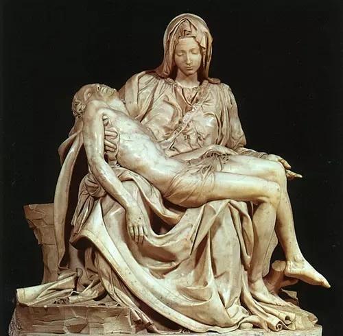 米开朗基罗有意把圣母表现得比他死去的儿子还要年轻,用圣母青春常在的形象寄托人文主义关于人性崇高和不朽的理想。人们很难相信这一杰作是出自一个二十四五岁的青年之手,米开朗基罗在圣母衣带上刻下自己的名字,这是他唯一一次在自己作品上题名。
