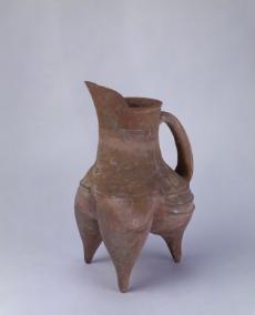 鬹胎为泥质红陶,冲天长流,细长颈,三个大袋足分裆而立,颈与后袋之间附一个麻花状鋬手,便于提拿。器物造型遒劲有力,似挺立之雄鸡。鬹是龙山文化最具特色的器物种类之一。此鬹为龙山文化陶器中的精品。