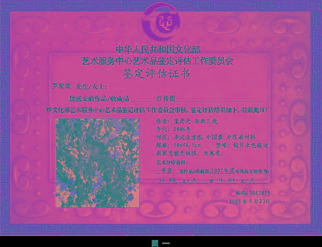 近期,有社会人士向我站举报在社会市场及网络上出现了假借“中华人民共和国文化部艺术服务中心艺术品鉴定评估工作委员会”的名义从事对艺术家艺术作品的“鉴定证书”。早在4月份文化部艺术服务中心官方网发表了“郑重声明”,我站也已多次在《艺术品鉴评》报纸及网站(www.jiandingwang.com)上转载了此“郑重声明”,然而这种现象还是不断地出现,伪“证书”满天飞,造成广大社会人士及艺术品收藏爱好者的误解和混淆。