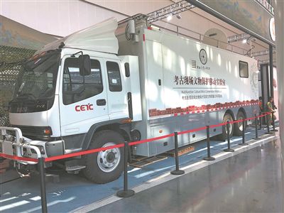 一辆改装过的乳白色厢式卡车停在今年8月在重庆举办的中国首届智能博览会场馆里,车身上的黑色大字格外醒目——考古现场文物保护移动实验室。这便是被称为“文物保护航母” 的移动实验室,它多次出现在全国各地的考古发掘现场,为考古工作提供系统的技术支持,并在第一时间对出土文物进行应急处理和保护。