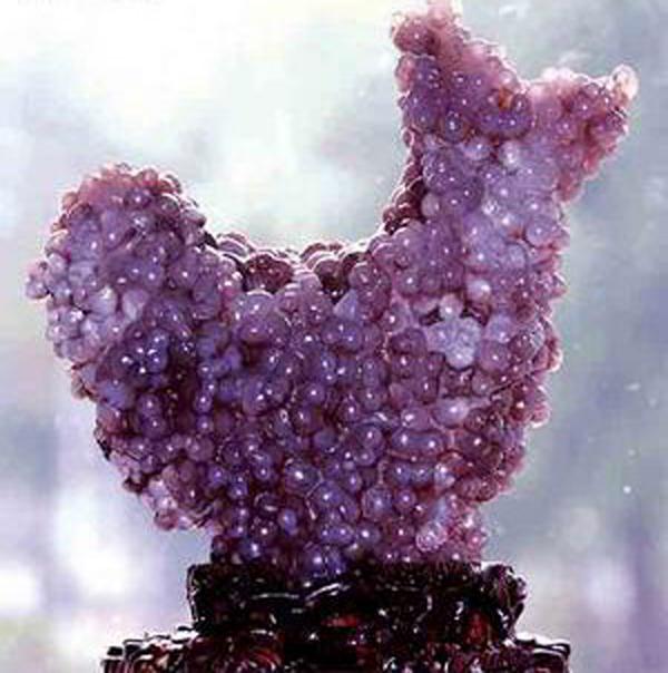 《中国版图》一块中国版图形状的葡萄玛瑙被估价9600万元,这是中国地质大学及中国文物学会玉器研究学会等单位主办的“中华奇石——葡萄玛瑙‘中国版图’珍品鉴赏评估会”上评出的价格;这块葡萄玛瑙紫色与白色相间,葡萄球状结晶十分完美,而且整体形状与中国版图极其相似。