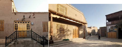 图7 修复后的清真寺立面(左图)及清真寺前小广场(左图)