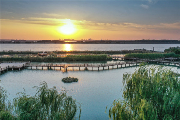 江苏泰兴市虹桥镇长江生态湿地风光带景色(2021年11月11日摄,无人机照片)。新华社记者 杨磊 摄
