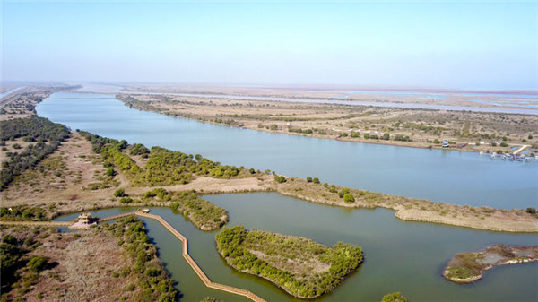 山东黄河三角洲国家级自然保护区风貌(2021年10月27日摄,无人机照片)。新华社记者 郭绪雷 摄