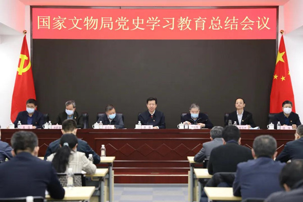 1月11日,国家文物局召开党史学习教育总结会议,学习贯彻习近平总书记关于党史学习教育重要指示,学习贯彻中央党史学习教育总结会议精神,总结国家文物局党史学习教育开展情况,对推动党史学习教育常态化长效化进行部署。党史学习教育中央第十五指导组组长任启亮、副组长吴佳松出席会议指导。文化和旅游部副部长、国家文物局局长李群出席会议并讲话。局党组副书记、副局长顾玉才主持会议,局党组成员、副局长宋新潮、胡冰、关强出席会议。
