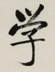 赝品“学”字下半部分的“子”字,横折与竖钩之间出现了可疑的缺口。整体形态也歪歪扭扭,不似真品结体舒展有度。