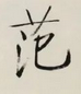 赝品“范”字三点分布奇怪,形状粗大肥厚,与真品特征不同,并非同一人风格。