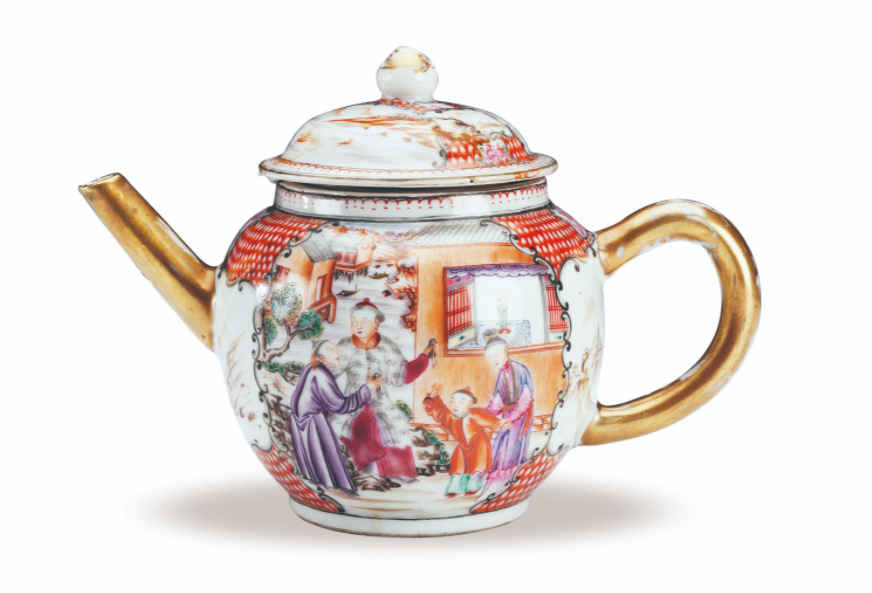 瓷器开光指的是在瓷器上画出扇形、蕉叶形、菱形等不同形状的边框,在边框内绘制图案纹饰。