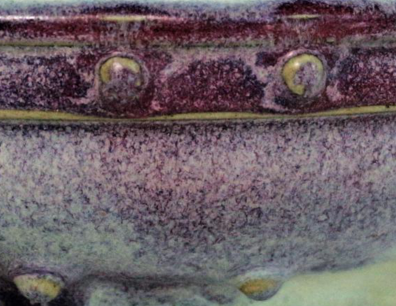 这种器物一般都会同刚出窑的新瓷一样,带有火刺光。器物在经过做旧处理后,表面会产生枯涩感,色泽常常会泛白并出现裂纹开片。