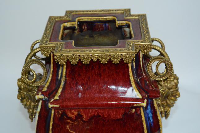2、将旧器改造成新品种,如产于成化年间的青花瓷后挂红釉,成为青花红釉瓷器。