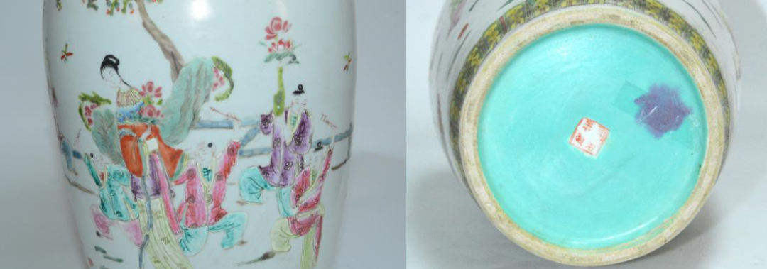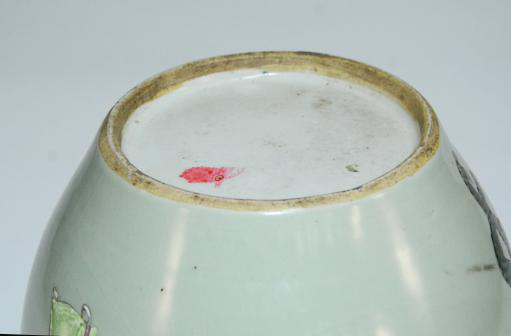 还有些是将带款的古瓷器底部旋切下来,镶嵌到另一件新仿的瓷器上,这种方法在清末以后比较流行,鉴定时要注意器底圈足衔接处胎釉的异常痕迹。