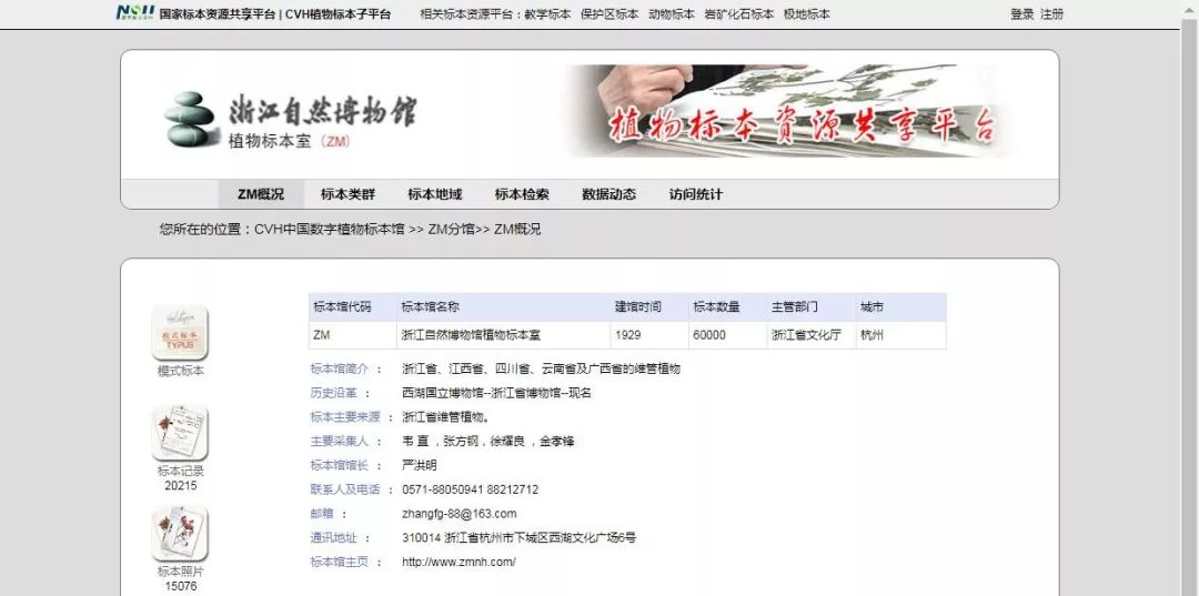 近日,浙江自然博物院数字植物标本馆(ZM)在该馆官网正式上线。访问者通过数字植物标本馆,可以在线查询到20215号标本信息及标本照片,涵盖3238种(含种下分类单位,下同)种子植物。