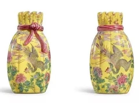 本季的领衔拍品则为清乾隆料胎黄地画珐琅凤舞牡丹包袱瓶,堪称私人收藏清代宫廷艺术品中的至宝至珍。