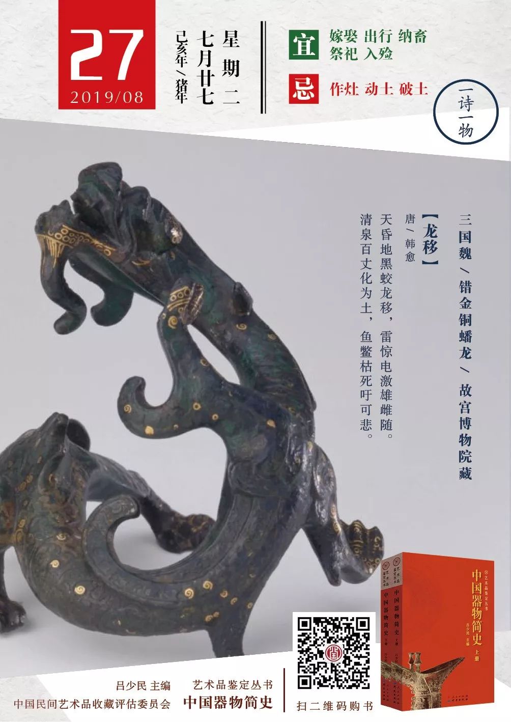 8月30日至10月16日在北京画院美术馆展出,展览由北京画院联合故宫博物院、中国美术馆、清华大学艺术博物馆、中央美术学院美术馆、首都博物馆等11家国内文博单位及艺术机构共同主办。展览以齐白石人物画的演变历程为线索,用齐白石原作及详实的文献资料和难得一见的“手稿”还原齐白石大写意人物画的发展脉络和艺术特色。 随着文博行业发展和全社会消费升级,博物馆文创产品成为文化消费领域“新宠”。《新文创消费趋势报告》显示,近两年电商平台文创产品成交规模爆发式增长,淘宝、天猫平台2019年的成交规模相比2017年增长了3倍。过去一年,淘宝、天猫博物馆旗舰店的累计访问量达到16亿人次,是全国博物馆线下接待人次的1.5倍,其中有1亿用户是“90后”。数据表明,上网买文创已成为年轻人的消费新趋势。 8月26日,作曲家马可日记手稿入藏仪式在中国国家博物馆举行,马可家属将46册马可日记手稿捐赠给国博。此次入藏的日记手稿,几经周折才得以保存下来,记录了一个普通知识分子从动荡年代里走来的最真实的心路历程,对研究特定历史时期的社会和文化生活具有重要的史料价值。越无人识越安闲——齐白石笔下的人物神情之二