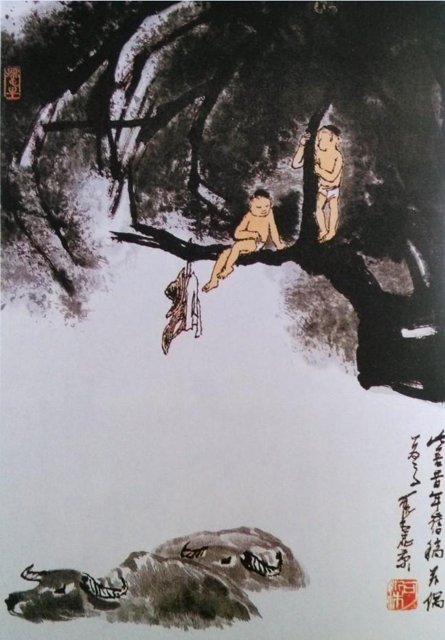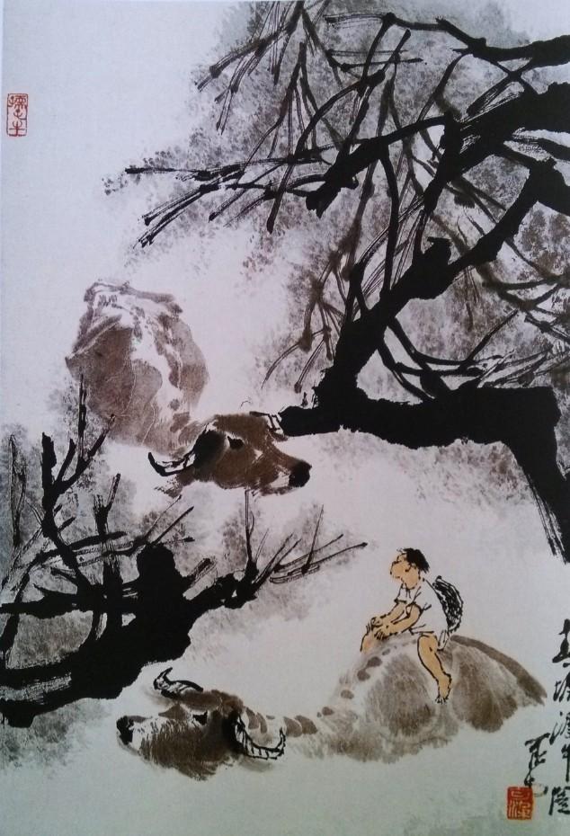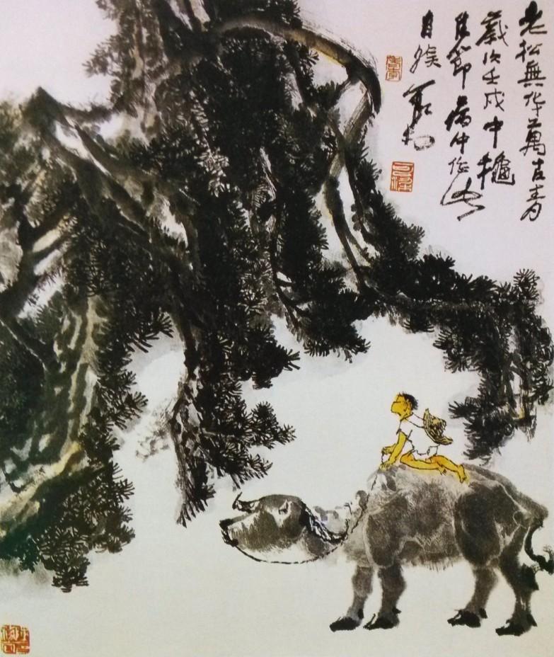 1980年 春塘渡牛图 69x46cm
