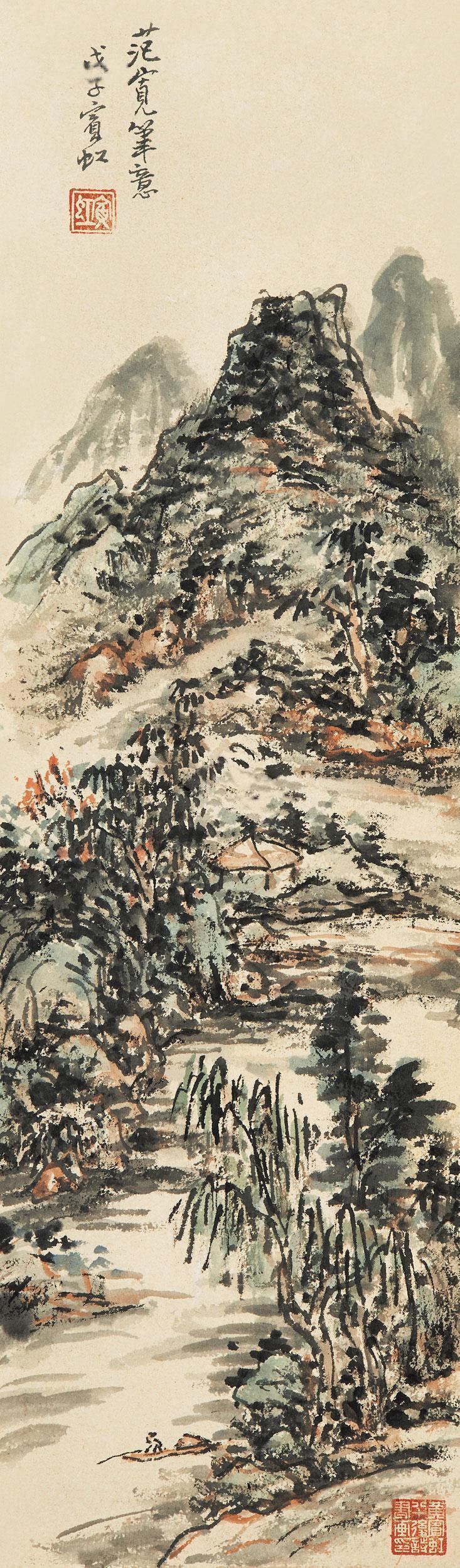 黄宾虹(1865-1955),近现代画家、学者。原籍安徽歙县,生于浙江金华。初名懋质,后改名质,字朴存,号宾虹,别署予向、虹叟、黄山山中人。擅画山水,为山水画一代宗师。精研传统与关注写生齐头并进,早年受新安画派影响,以干笔淡墨、疏淡清逸为特色,为白宾虹;八十岁后以黑密厚重、黑里透亮为特色,为黑宾虹。其画风苍浑华滋,意境深邃。偶作花鸟草虫亦奇崛有致。除绘画之外,并从事绘画史论、篆刻的研究和教学。曾任杭州国立艺专教授等职。著有《黄山画家源流考》《虹庐画谈》《画法要旨》等。